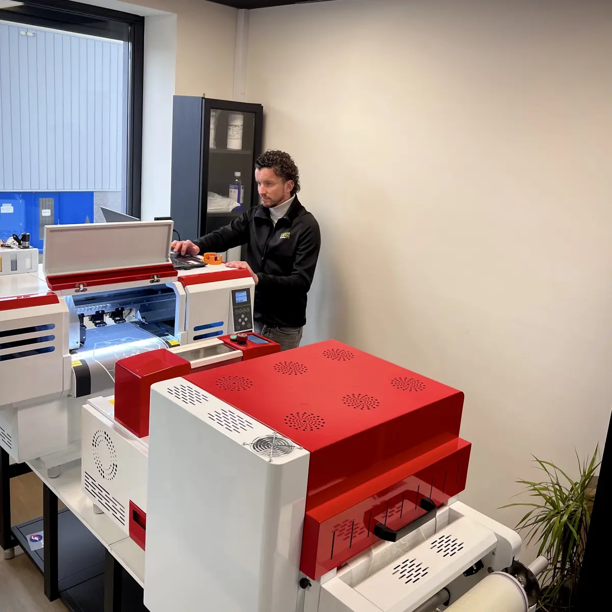 Doordat de JETprint transfer in 1 productielijn geproduceerd wordt en een korte levertijd mogelijk! Het printen van de kleuren, printen van de witte backing, aanbrengen van de lijmlaag en het fixeren van de transfers wordt direct achter elkaar opgevolgd.